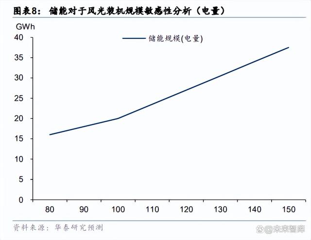 市場化并網(wǎng)項(xiàng)目配儲要求更高,后續(xù)儲能裝機(jī)增速預(yù)計(jì)將高于新能源增速。經(jīng)過我們預(yù)測, 在所有電站均為平價(jià)電站,保障性并網(wǎng)項(xiàng)目配儲 10%,儲能時長 2 小時,市場化并網(wǎng)項(xiàng)目 配儲 15-20%,儲能時長 4 小時,全國保障性并網(wǎng)項(xiàng)目總規(guī)模 100GW 的假設(shè)下,風(fēng)光并網(wǎng) 總規(guī)模超過 100GW 后,儲能規(guī)模隨著風(fēng)光并網(wǎng)規(guī)模增長的速度將加快。具體到市場化并網(wǎng) 項(xiàng)目配儲 17.5%時,當(dāng)風(fēng)光并網(wǎng)規(guī)模低于 100GW,并網(wǎng)規(guī)模每增加 10GW 儲能規(guī)模將增 加 1GW,當(dāng)風(fēng)光規(guī)模高于 100GW,并網(wǎng)規(guī)模每增加 10GW 儲能規(guī)模將增加 1.75GW。