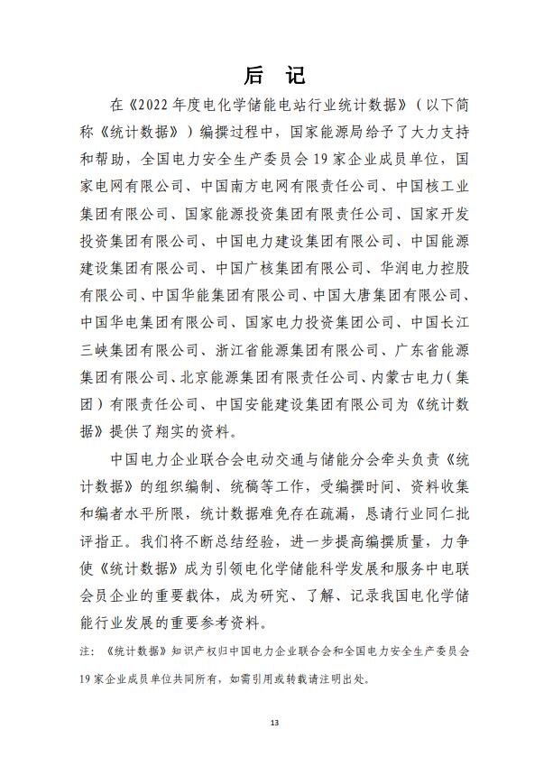 2022年度電化學(xué)儲(chǔ)能電站行業(yè)統(tǒng)計(jì)數(shù)據(jù)