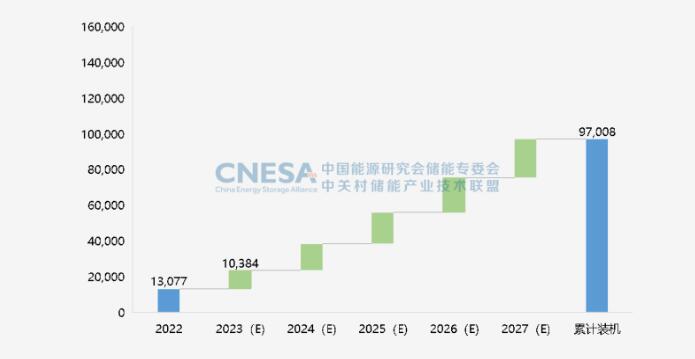 圖6:未來5年中國新型儲(chǔ)能累計(jì)投運(yùn)裝機(jī)規(guī)模預(yù)測(cè)(2023-2027年) 單位:MW