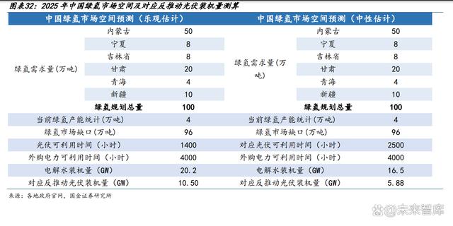 歐盟提出可再生氫(綠氫)定義規(guī)則,三大條定義核心全部與可再生能源發(fā)電掛鉤, 制取氫氣電力中的 90%是可再生能源發(fā)電,這樣制取的氫才能稱為綠氫。因此,基于 光伏年發(fā)電小時數(shù)的限制,電解槽一年的運(yùn)行時間與光伏設(shè)備運(yùn)營時間高度相關(guān)。以 電解槽匹配光伏制氫為例測算,分樂觀情況下,電解槽年運(yùn)行 1400 小時和中性情況 下,年運(yùn)行2500小時,分別對應(yīng)90萬噸綠氫規(guī)劃總量下,可裝電解槽37.8GW和21.2GW, 反推動光伏裝機(jī)量 47.3GW 和 26.5GW。預(yù)計在未來技術(shù)迭代和成本逐步下降的情況下, 2025 年后電解水設(shè)備及綠氫市場將持續(xù)加速,反推動可再生能源量也將高增。