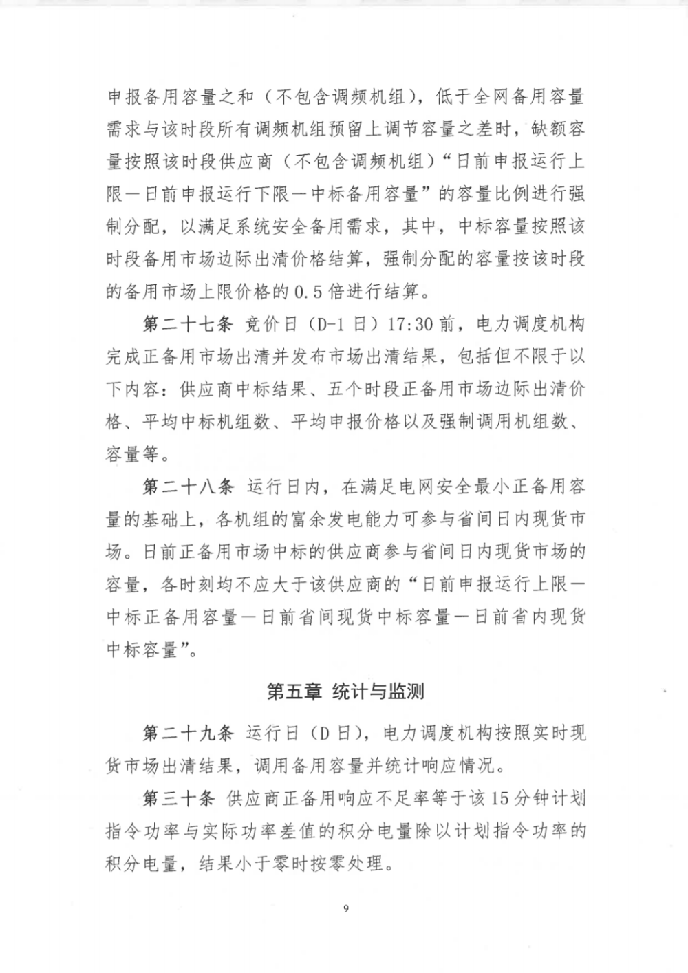 (二)正備用服務(wù)供應(yīng)商:執(zhí)行正備用市場交易結(jié)果、能夠響應(yīng)調(diào)度指令、調(diào)整發(fā)電出力(或用電負(fù)荷)提供備用服務(wù)的市場主體,包括參與現(xiàn)貨市場的燃煤機(jī)組和燃?xì)鈾C(jī)組,省調(diào)直調(diào)的新型儲能電站、虛擬電廠、可控負(fù)荷,以及具備調(diào)節(jié)能力的風(fēng)場、光伏電站等。新能源企業(yè)和電力用戶開展技術(shù)改造,具備穩(wěn)定提供備用輔助服務(wù)的條件后,需通過相關(guān)性能測試。