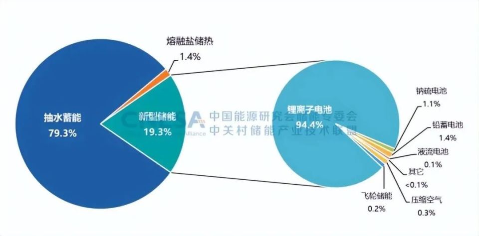 2022年,中國新增投運(yùn)電力儲能項(xiàng)目裝機(jī)規(guī)模首次突破15GW,達(dá)到16.5GW,其中,抽水蓄能新增規(guī)模9.1GW,同比增長75%;新型儲能新增規(guī)模創(chuàng)歷史新高,達(dá)到7.3GW/15.9GWh,功率規(guī)模同比增長200%,能量規(guī)模同比增長280%;新型儲能中,鋰離子電池占據(jù)絕對主導(dǎo)地位,比重達(dá)97%,此外,壓縮空氣儲能、液流電池、鈉離子電池、飛輪等其它技術(shù)路線的項(xiàng)目,在規(guī)模上有所突破,應(yīng)用模式逐漸增多。