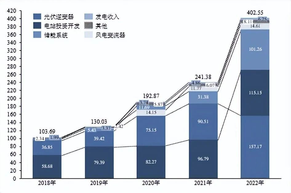 圖表 18:2018-2022年陽光電源營收結(jié)構(gòu) 單位:億元