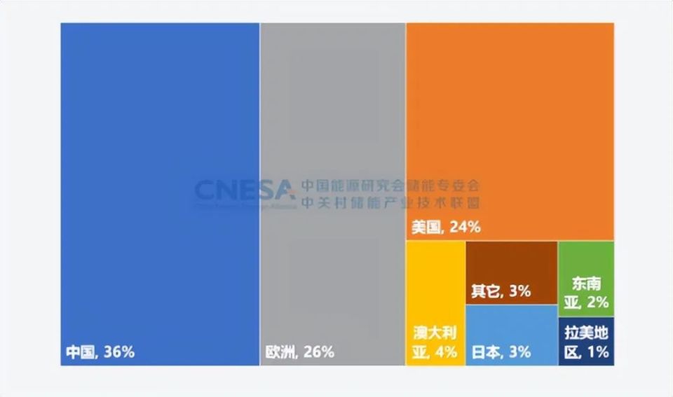 2022年,全球儲能市場繼續(xù)高速發(fā)展,新增投運(yùn)電力儲能項(xiàng)目裝機(jī)規(guī)模30.7GW,同比增長98%。其中,新型儲能新增投運(yùn)規(guī)模首次突破20GW,達(dá)到20.4GW,是2021年同期的2倍。中國、歐洲和美國繼續(xù)引領(lǐng)全球儲能市場的發(fā)展,三者合計(jì)占全球市場的86%,比2021年同期上升6個(gè)百分點(diǎn)。
