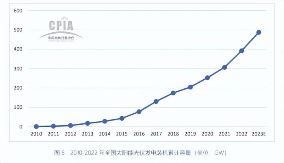 圖表 22:2010-2022年中國太陽能光伏發(fā)電裝機(jī)累計(jì)容量 單位:GW