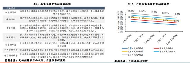 以廣東為代表的工商業(yè)較為發(fā)達(dá)的地區(qū)工商業(yè)儲(chǔ)能電站已經(jīng)具備了一定經(jīng)濟(jì)性。在廣東地區(qū),在僅考慮峰谷價(jià)差套利單一受益方式的情況下, 工商業(yè)儲(chǔ)能電站通過(guò)每天兩充兩放(一次谷充尖放、一次平充峰放),初始投資成本為1.6元/Wh,最大峰谷價(jià)差在1.1元/度的情況下,其資 本金收益率可達(dá)9.4%,投資回收期在8年之內(nèi)。在鋰電成本持續(xù)下降的情況下,改投資回收期有望進(jìn)一步縮短。
