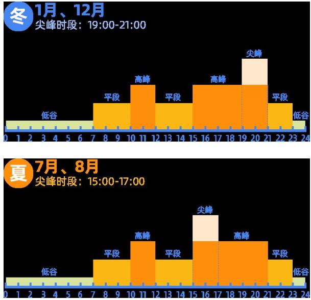 新政策:夏季7月、8月,尖峰時(shí)段:15:00-17:00;冬季1月、12月,尖峰時(shí)段:19:00-21:00