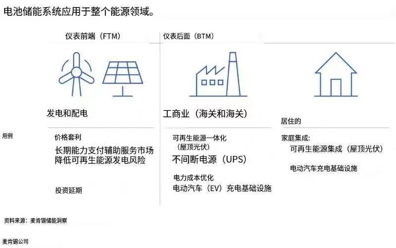 電化學(xué)儲能分為三個部分:電表前端 (FTM) 公用事業(yè)規(guī)模安裝,通常大于 10 兆瓦時 (MWh);用戶側(cè) (BTM) 商業(yè)和工業(yè)裝置,通常范圍從 30 千瓦時 (kWh) 到 10 MWh;和BTM住宅裝置,通常小于30 kWh。