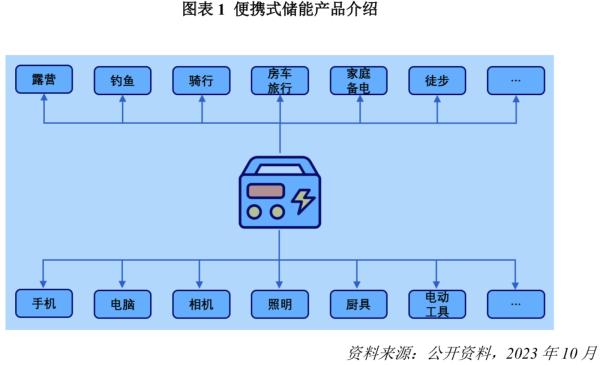 在戶外露營活動中,便攜式儲能可以給手機、電腦等個人數(shù)碼產(chǎn)品充電,還可以給電 磁爐、冰箱、照明燈具、投影儀等較大功率的電器提供短時供電,滿足消費者戶外運動、 戶外露營全部的用電需求。