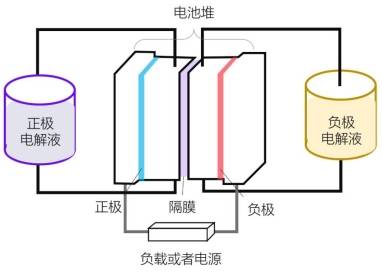 圖:液流電池運(yùn)行原理圖