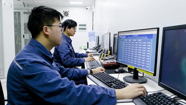 寶湖儲能站運行人員實時監(jiān)控電站充放電情況。供圖:南網(wǎng)儲能公司