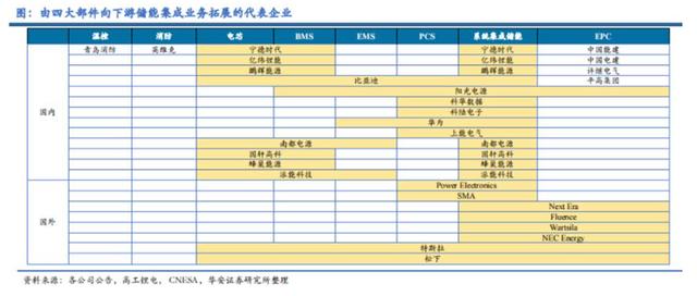 具體來說,儲(chǔ)能系統(tǒng)的核心有“四大件”:電池組、儲(chǔ)能變流器(PCS)、電池管理系統(tǒng)(BMS)、能量管理系統(tǒng)(EMS)等。早期每個(gè)環(huán)節(jié)的核心企業(yè),都能過得不錯(cuò)。但如今,越來越多企業(yè),從單一產(chǎn)品走向系統(tǒng)集成業(yè)務(wù),加大一體化力度,如陽(yáng)光電源、科陸電子從PCS進(jìn)入系統(tǒng)集成,寧德時(shí)代、億緯鋰能等公司從電池進(jìn)入系統(tǒng)集成。