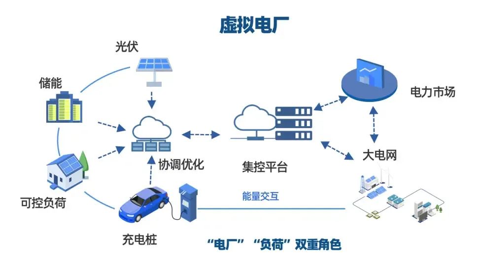 但當(dāng)前工商業(yè)儲能的收益來源仍以峰谷價差套利為主,容易受政策、補(bǔ)貼等或?qū)⒉荒荛L期持續(xù)等因素的制約。而虛擬電廠,可以聚合包括工商業(yè)儲能在內(nèi)的用戶側(cè)可調(diào)節(jié)資源,參與電網(wǎng)需求響應(yīng)、輔助服務(wù)市場,從而獲取收益。虛擬電廠的加速應(yīng)用也會縮短工商業(yè)儲能成本回收周期,大大提升其盈利能力,從而解決目前工商業(yè)儲能主要依靠峰谷價差套利的盈利局限。