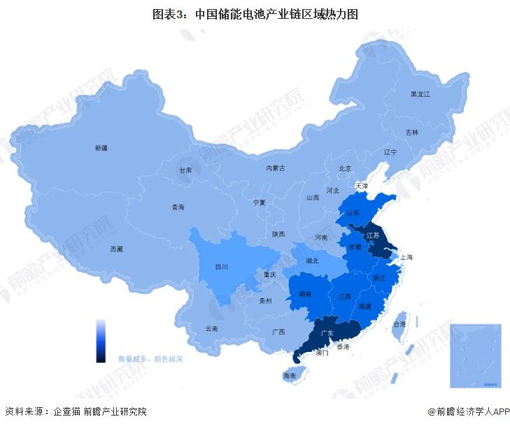儲能電池產業(yè)鏈區(qū)域熱力地圖:廣東、江蘇企業(yè)分布最多