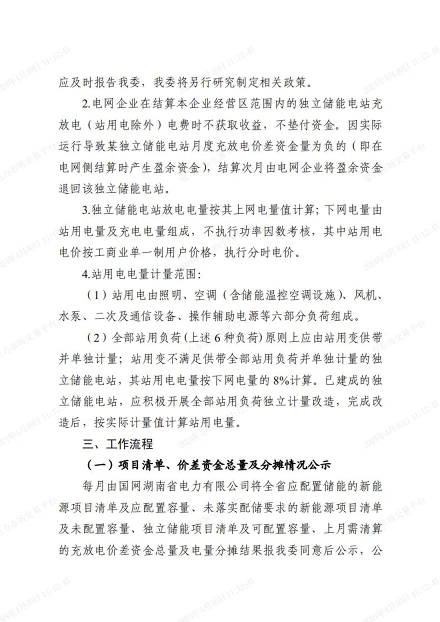 另外,方案還指出:每月由國(guó)網(wǎng)湖南省電力有限公司將全省應(yīng)配置儲(chǔ)能的新能源項(xiàng)目清單及應(yīng)配置容量、未落實(shí)配儲(chǔ)要求的新能源項(xiàng)目清單及未配置容量、獨(dú)立儲(chǔ)能項(xiàng)目清單及可配置容量、上月需清算的充放電價(jià)差資金總量及電量分?jǐn)偨Y(jié)果報(bào)我發(fā)改委同意后公示,公示期5個(gè)工作日。
