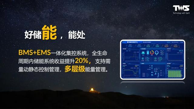 新品BMS+EMS采用一體化集控系統(tǒng),使得全生命周期內(nèi)儲能系統(tǒng)收益提升20%;并且支持需量動靜態(tài)控制管理,做到多層級能量管理;結(jié)合智能優(yōu)化算法和云平臺遠程監(jiān)控,AI模型自學習優(yōu)化、實時診斷健康狀態(tài)、出具數(shù)據(jù)報告分析,以精準科學的“能源管理方案”助力工商業(yè)儲能高效設計運營。