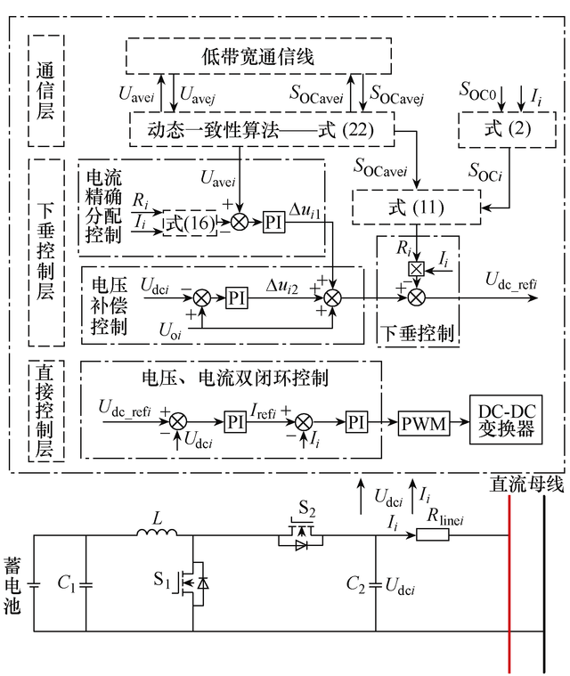 他們指出,以改變下垂系數(shù)為基礎(chǔ),通過前期控制因子調(diào)節(jié)系統(tǒng)最大輸出功率,后期加速因子放大均衡后期荷電狀態(tài)的差值,能夠達(dá)到加快荷電狀態(tài)均衡的目的。另外,引入容量權(quán)重因子,合理分配不同容量儲能單元的功率,使其趨于容量比,旨在有效彌補各儲能單元間的容量差異,有助于確保各個儲能單元在充電和放電過程中的合理參與,提高系統(tǒng)的整體效能和使用壽命。