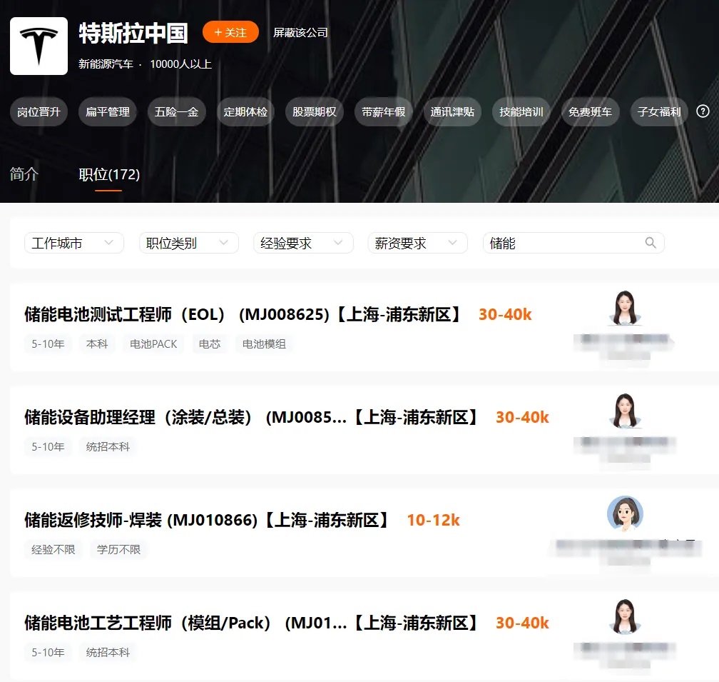 而有消息顯示,特斯拉給予上海地區(qū)儲(chǔ)能產(chǎn)品工程師(Megepack)的待遇為35~65k;對(duì)于上海地區(qū)儲(chǔ)能項(xiàng)目經(jīng)理待遇為30~60k。