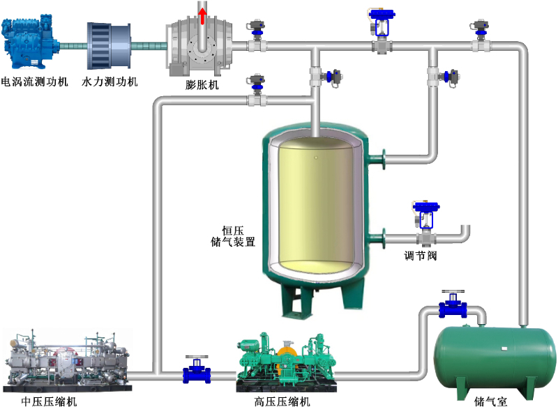 恒壓壓縮空氣儲(chǔ)能試驗(yàn)平臺(tái)示意圖 (圖片來(lái)源:中國(guó)科學(xué)院工程熱物理研究所)