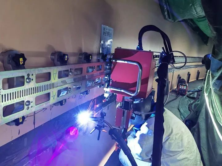 在三澳核電項(xiàng)目,智能激光跟蹤MAG自動(dòng)焊技術(shù)覆蓋鋼襯里底板、筒體到穹頂車(chē)間預(yù)制和現(xiàn)場(chǎng)安裝的全流程系列化、多工況場(chǎng)景的全面應(yīng)用,形成了具有完全自主知識(shí)產(chǎn)權(quán)的鋼襯里建造高效智能焊接先進(jìn)技術(shù)體系,具有顯著的經(jīng)濟(jì)社會(huì)效益。三澳核電一期項(xiàng)目累計(jì)焊縫長(zhǎng)度約3763m,共拍片2930張,一次合格率為97.2%,焊接質(zhì)量穩(wěn)定。