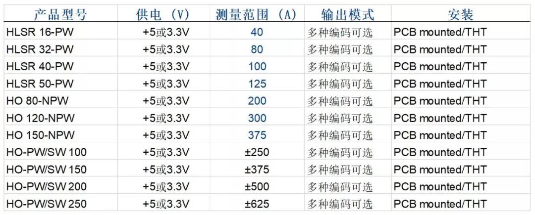 萊姆最新發(fā)布的系列數(shù)字輸出型開(kāi)環(huán)霍爾效應(yīng)電流傳感器:HO和HLSR,它們就是基于Σ-Δ調(diào)制器原理,輸出信號(hào)為1位串行比特流信號(hào)的數(shù)字傳感器。該新品具有4種不同的機(jī)械設(shè)計(jì)來(lái)滿(mǎn)足PCB安裝和盤(pán)式安裝的要求,其可以對(duì)額定值為16、32、40、50、80、100、120、150、200、250ARMS的電流進(jìn)行測(cè)量(如表1所示,圖4所示),并具有20kHz帶寬,12位的分辨率。