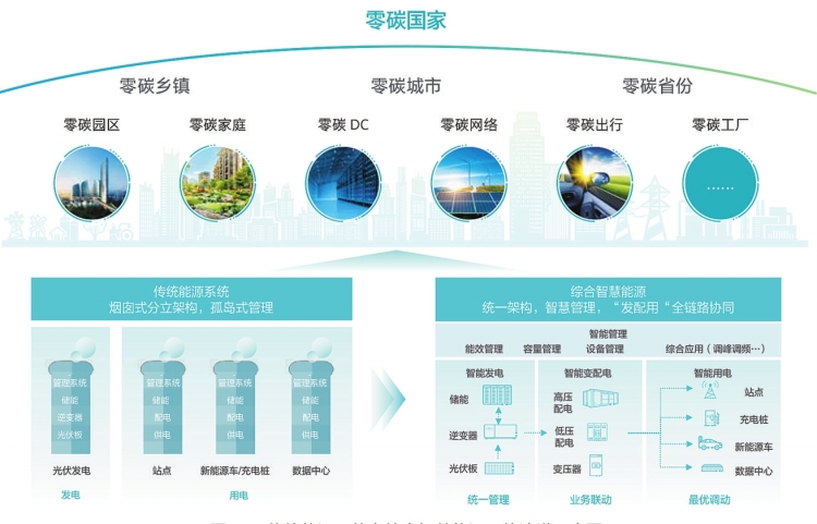 傳統(tǒng)能源系統(tǒng)向綜合智慧能源系統(tǒng)演進示意圖