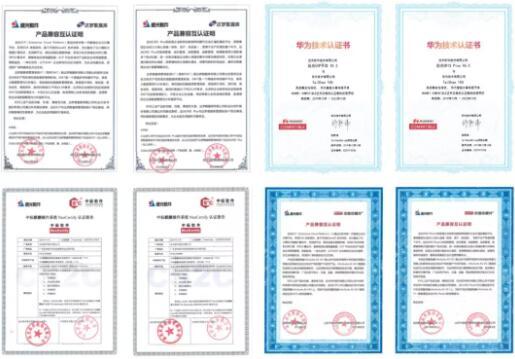 國產(chǎn)服務(wù)器(華為)、國產(chǎn)操作系統(tǒng)(中標(biāo)麒麟)、國產(chǎn)數(shù)據(jù)庫(達夢)、國產(chǎn)中間件(中創(chuàng))認證書