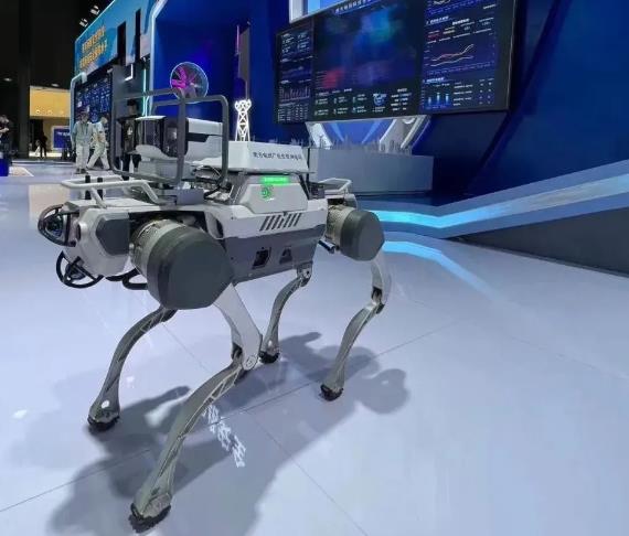 ▲數(shù)字化技術(shù)成為保障電網(wǎng)安全的重要支撐力量。圖為南方電網(wǎng)公司在網(wǎng)絡(luò)安全博覽會上展示的新型四足巡維智慧狗“吠云” 。林丹丹 攝