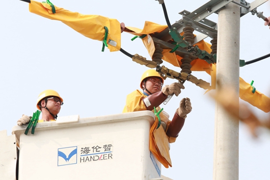中國電力網(wǎng)訊 8月11日,在濰坊壽光市胡二村,國網(wǎng)壽光市供電公司帶電作業(yè)人員冒著潮濕悶熱天氣,對(duì)10千伏胡營線塑料支線09號(hào)桿帶電更換隔離刀閘,同時(shí)對(duì)10千伏顏方線81號(hào)桿帶電校正歪斜瓷瓶,全面消除線路運(yùn)行隱患,保障初秋時(shí)節(jié)居民用電安全。