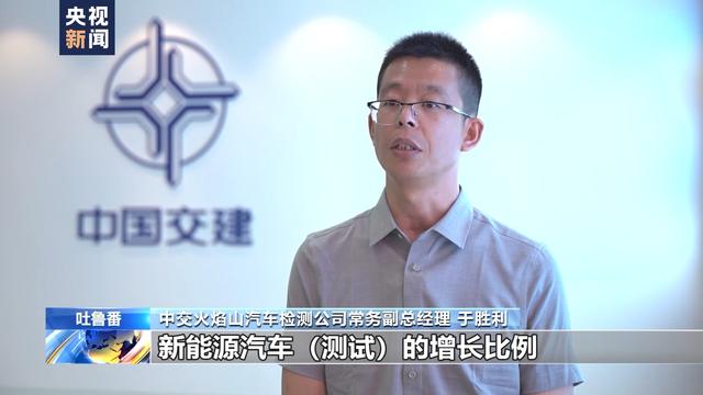 中交火焰山汽車檢測(cè)公司常務(wù)副總經(jīng)理 于勝利:吐魯番6到9月份,氣溫就可以達(dá)到40℃以上。我們同比進(jìn)行分析,新能源汽車測(cè)試的增長(zhǎng)比例已經(jīng)達(dá)到了25%左右,測(cè)試的四輛車?yán)锎蟾庞幸惠v車就是新能源車。