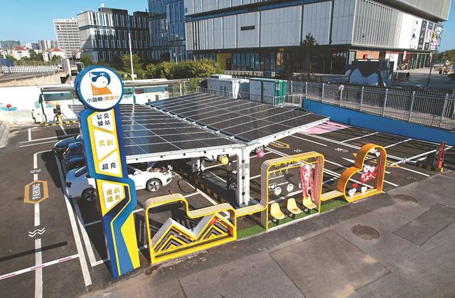 秦淮區(qū)卡子門公交主題“光儲(chǔ)充服”充能驛站,為國內(nèi)首座一體化公交充能驛站,建有1套裝機(jī)功率為35千瓦的光伏雨棚,同步配置10千瓦時(shí)儲(chǔ)能柜,全年可提供約3.5萬千瓦時(shí)綠電,設(shè)置8個(gè)充電樁,可以同時(shí)為11輛新能源汽車充電。