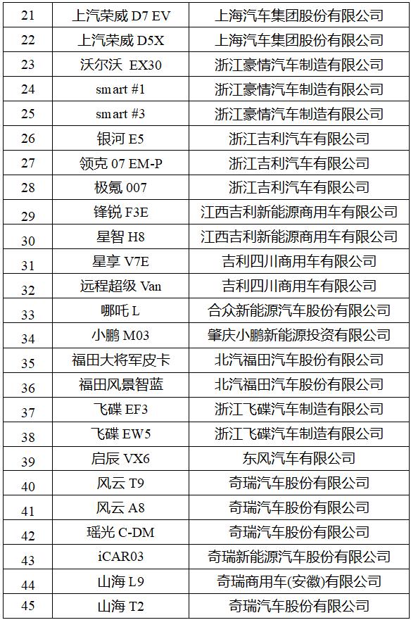 2024年新能源汽車(chē)下鄉(xiāng)車(chē)型第二批45款車(chē)型公布