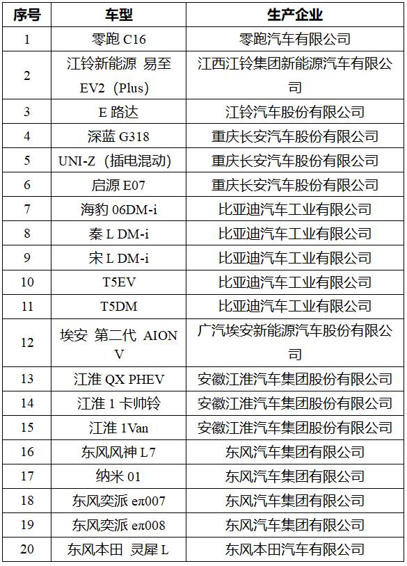 2024年新能源汽車(chē)下鄉(xiāng)車(chē)型目錄(第二批)的通知