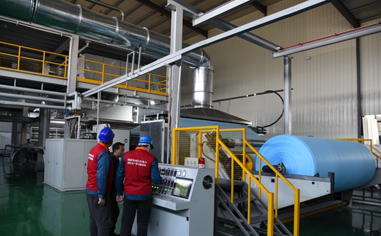 臺頭鎮(zhèn)是全國重要的醫(yī)用無紡布生產(chǎn)基地,全鎮(zhèn)有大大小小40余家醫(yī)用無紡布生產(chǎn)企業(yè),肩負(fù)著為全國口罩生產(chǎn)企業(yè)提供原材料的重要生產(chǎn)任務(wù)。
