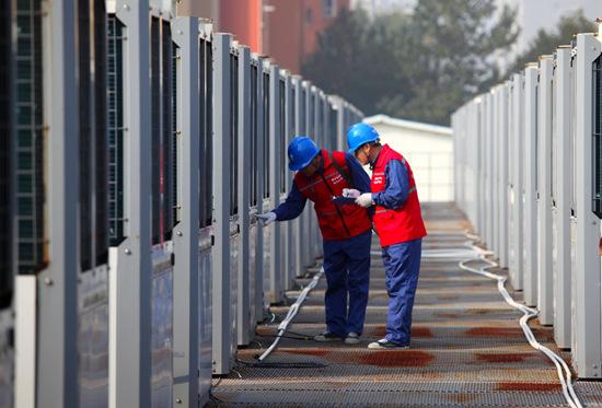 國網(wǎng)趙縣供電公司工作人員對李春大道空氣能供熱站主設(shè)備進行巡視檢查。侯西果攝