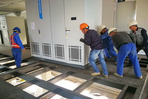 本次設備安裝主要包括高壓變頻系統(tǒng)、隔離變壓器、開關柜、計量柜、涌流抑制柜、接地電阻柜等設備安裝工作。當天,全部設備均安裝到位,為后續(xù)整個岸電系統(tǒng)的調試、試驗、驗收等打下了堅實基礎。