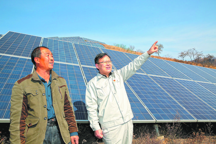 “有了你們幫忙建設(shè)的這些光伏發(fā)電項(xiàng)目,我們每年都能享受入股分紅,今年竟然有1000多元。”2月24日,河北省豐寧滿族自治縣波羅諾鎮(zhèn)官梁村脫貧戶應(yīng)自興從駐村工作隊(duì)第一書記徐景升手中接過(guò)光伏項(xiàng)目分紅的錢,滿臉笑意。和煦的陽(yáng)光下,340塊深藍(lán)色的光伏板整齊排列在官梁村村委會(huì)院內(nèi),朝南傾斜,面向天空,折射出耀眼的光芒。