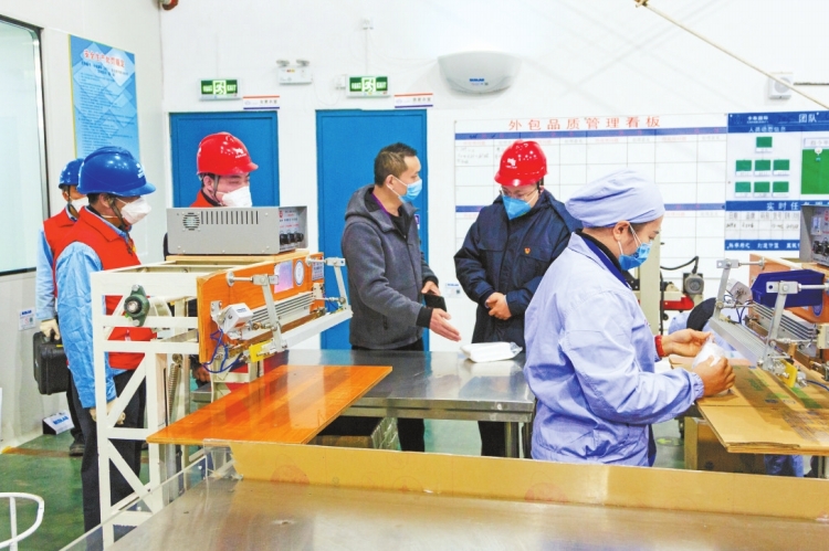 位于貴州省黔南布依族苗族自治州龍里縣高新技術園區(qū)的卡布控股集團是一家生產(chǎn)口罩防護內(nèi)墊的企業(yè)。2月5日,貴州電網(wǎng)公司都勻龍里供電局組織黨員服務隊主動上門了解企業(yè)生產(chǎn)情況和用電需要,護航企業(yè)生產(chǎn)用電。 魏洪明 攝