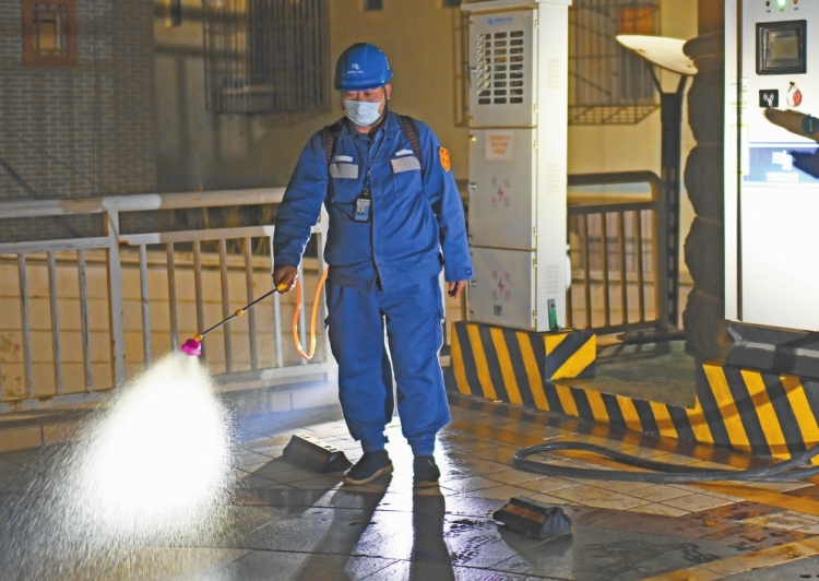 從2月2日晚上開始,廣西電網(wǎng)公司南寧邕寧供電局黨員服務隊每天組織3名黨員,在23時后對供電區(qū)域內(nèi)的電動汽車充電站進行全面消毒,減少對用戶的影響,確保充電環(huán)境安全。馬華斌 攝
