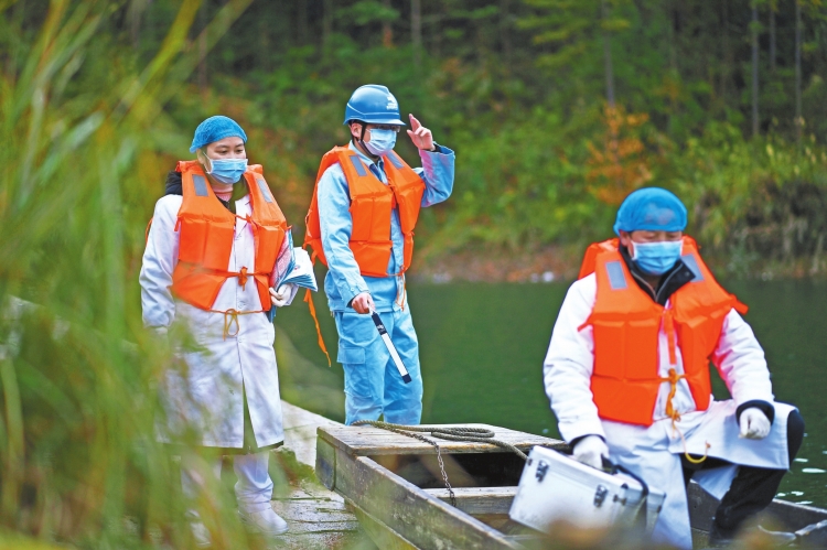 2月8日,在臺江縣革一鎮(zhèn)排生村,臺江供電局臺盤供電所黨員王清亮和當?shù)匦l(wèi)生部門工作人員乘船前往工作點。 劉開福 攝影報道