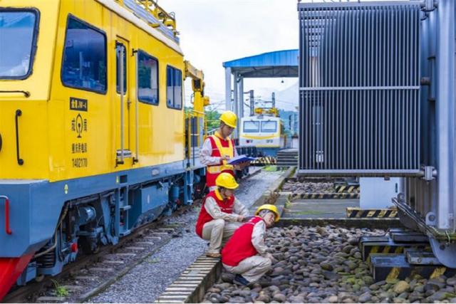 國(guó)家電網(wǎng)重慶電力紅巖(長(zhǎng)壽園區(qū))共產(chǎn)黨員服務(wù)隊(duì)隊(duì)員對(duì)晏家火車牽引站開展安全用電檢查。