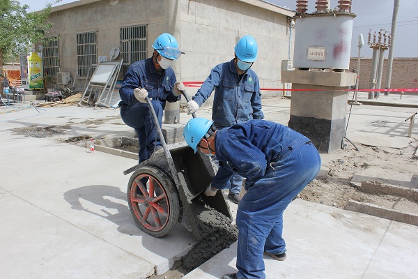 中國電力網(wǎng)訊 “快拉一車混凝土過來,這里還需要一車,大家都把混凝土鏟平了”,4月22日,新疆生產(chǎn)建設(shè)兵團(tuán)第一師電力有限責(zé)任公司輸變電工區(qū)組織職工自己動(dòng)手美化家園,員工們都拿著鐵鍬、刮刀等工具在院內(nèi)修補(bǔ)地坪,讓家園更美、更靚。