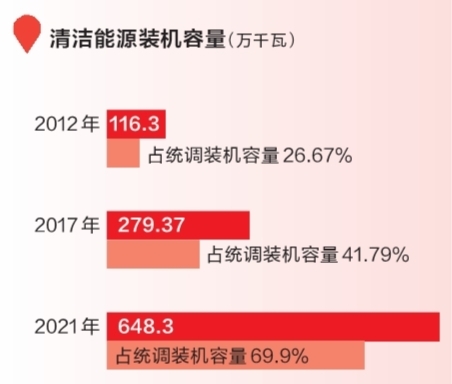 從2012年到2021年,海南全省清潔能源裝機(jī)容量從116.3萬千瓦增長到648.3萬千瓦,裝機(jī)占比從26.67%增長到69.9%。海南電網(wǎng)消納清潔能源從27.42億千瓦時(shí)增長到165.4億千瓦時(shí);綜合線損率從7.99%下降到5.36%。一組組數(shù)據(jù)的對比,揭示了海南電網(wǎng)公司推動能源綠色低碳轉(zhuǎn)型的深刻變化。