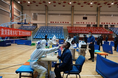 早上8時起,該廠體育館里工作人員、醫(yī)護(hù)人員和志愿者紛紛忙碌起來,布置采樣桌,擺放電腦,連接網(wǎng)線,檢測區(qū)域設(shè)置一米間隔。體育館外,等待檢測的人員攜帶工作證、身份證排隊,由該廠黨員干部、志愿者組成的引導(dǎo)人員在現(xiàn)場維持秩序,提醒待檢測人員注意間隔、避免扎堆。9時起,檢測工作正式開始,志愿者引導(dǎo)待檢人員分組進(jìn)入檢測現(xiàn)場、有序進(jìn)行登記,醫(yī)護(hù)人員“全副武裝”,身著防護(hù)服、護(hù)面罩,為大家采集咽拭子。檢測現(xiàn)場設(shè)置十分合理,大家都站在一米間隔線上,隊伍有序順暢,檢測速度大幅提升。