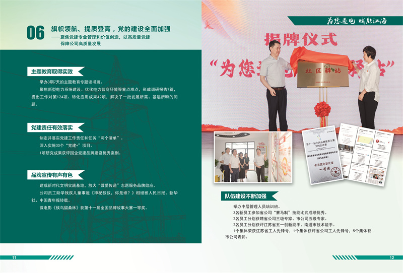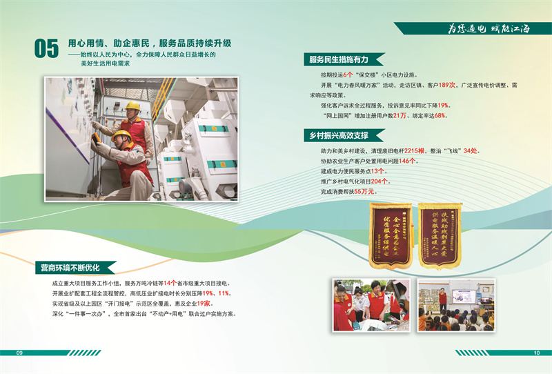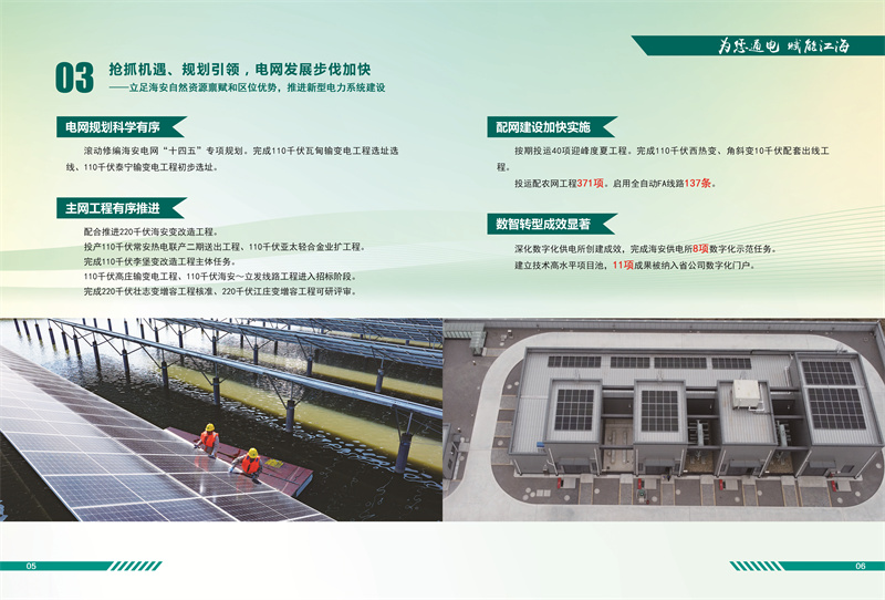 《白皮書(shū)》披露,2023年,該公司組織召開(kāi)海安市迎峰度夏保供工作會(huì)議,深挖非工空調(diào)負(fù)荷調(diào)控潛力,促請(qǐng)政府出臺(tái)需求響應(yīng)、非工負(fù)荷調(diào)節(jié)能力建設(shè)等支持政策。堅(jiān)持“杜絕增量、清除存量”原則,拆除1000千伏泰吳線下方違規(guī)大棚。滾動(dòng)修編海安電網(wǎng)“十四五”專(zhuān)項(xiàng)計(jì)劃,主網(wǎng)工程有序推進(jìn)。深化數(shù)字化供電所創(chuàng)建成效,完成8項(xiàng)數(shù)字化示范任務(wù)。11項(xiàng)成果被納入省公司數(shù)字化門(mén)戶。完成發(fā)明專(zhuān)利授權(quán)4項(xiàng)、成果轉(zhuǎn)化2項(xiàng),年度QC項(xiàng)目榮獲市公司一等獎(jiǎng)。深化“開(kāi)門(mén)接電”示范區(qū)建設(shè),全面省級(jí)以上園區(qū)全覆蓋,成立重大項(xiàng)目服務(wù)小組,服務(wù)萬(wàn)噸冷鏈等14個(gè)省市級(jí)重大項(xiàng)目接電。公司員工助學(xué)殘疾兒童事跡《神秘叔叔,你是誰(shuí)?》相繼被人民日?qǐng)?bào)、新華社、中國(guó)青年報(bào)等中央媒體相繼轉(zhuǎn)載。