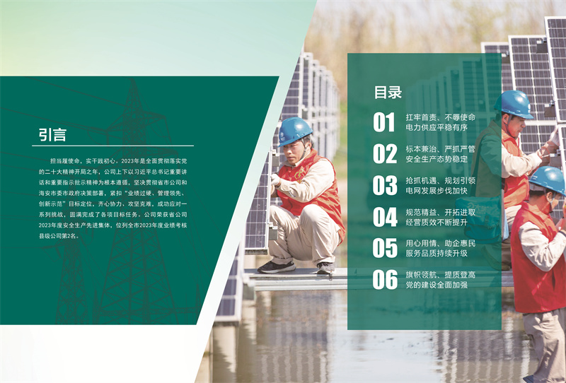 《白皮書(shū)》指出,2023年,國(guó)網(wǎng)海安市供電公司緊扣“業(yè)績(jī)過(guò)硬、管理領(lǐng)先、創(chuàng)新示范”的目標(biāo)定位,齊心協(xié)力、攻堅(jiān)克難,成功應(yīng)對(duì)一系列挑戰(zhàn)?!栋灼?shū)》中還作出了2024年履責(zé)承諾。
