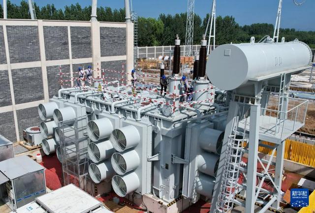 8月5日,工人在雄安(北京西)1000千伏特高壓變電站擴容工程建設(shè)工地施工。