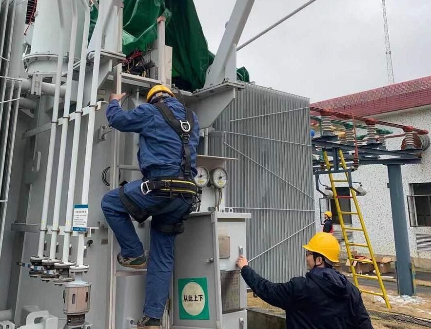30分鐘后,擔(dān)山變110千伏進(jìn)線、1號(hào)主變、10千伏母分開關(guān)等I段相關(guān)設(shè)備全停操作正式開始。此時(shí),擔(dān)山變戶外作業(yè)現(xiàn)場(chǎng),陰雨連綿。操作人員身著雨衣,手提手電,在能見(jiàn)度不高的晨光中,一絲不茍地進(jìn)行著操作。工作監(jiān)護(hù)人、安全督導(dǎo)員在一旁嚴(yán)格把關(guān),確保做到安全、質(zhì)量“雙百分”。一系列操作完成后,運(yùn)維人員會(huì)同工作負(fù)責(zé)人對(duì)現(xiàn)場(chǎng)安全措施進(jìn)行檢查,對(duì)具體的設(shè)備指明實(shí)際的隔離措施,確保試驗(yàn)設(shè)備無(wú)電壓。隨后,工作負(fù)責(zé)人和工作許可人細(xì)心地履行工作許可手續(xù),工作負(fù)責(zé)人向各工作成員交代工作內(nèi)容,危險(xiǎn)點(diǎn)和預(yù)控措施后,開展對(duì)擔(dān)山變1號(hào)主變、I段相關(guān)設(shè)備的C檢工作……一切都在有條不紊中進(jìn)行。