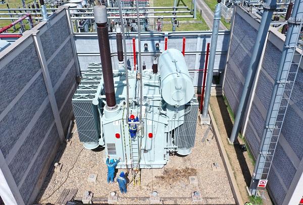 圖說(shuō):500千伏三林變電站4號(hào)主變C相本體成功完成調(diào)換并恢復(fù)供電 采訪對(duì)象供圖(下同)