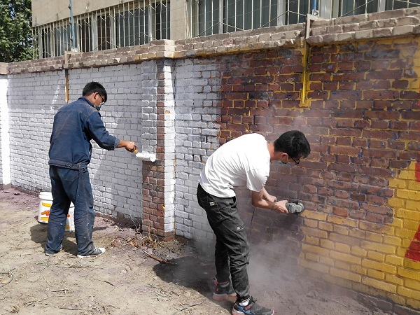 烈日當頭,33℃的高溫絲毫沒有影響到大家干活的熱情。修繕路基的男生們和著水泥、手拿磚塊堆砌出一條筆直的長線;清理墻面的男生也不甘示弱拿著鋼絲刷,拎著裝滿油漆的白桶、滾筒刷來到圍墻外清理墻面;打掃庭院的女孩們拿著手中的勞動工具攀高爬下、忙忙碌碌。到了午休時分,為保質(zhì)保量完成任務(wù),張志龍,作為墻面清理負責人的他,選擇獨自留下,汗水一遍又一遍打濕他身穿的工作服,各色的粉塵混合著白色的油漆落在他的身上。他說:“今天雖然很累很辛苦,但看到俺們自己的勞動成果,能給大家創(chuàng)造好的環(huán)境,我覺得很有意義”。言辭之間,他充滿著自豪和快樂。直到晚上快十點,完成門口的墻面粉刷任務(wù),幾個人才帶著一身的泥土回家吃飯。